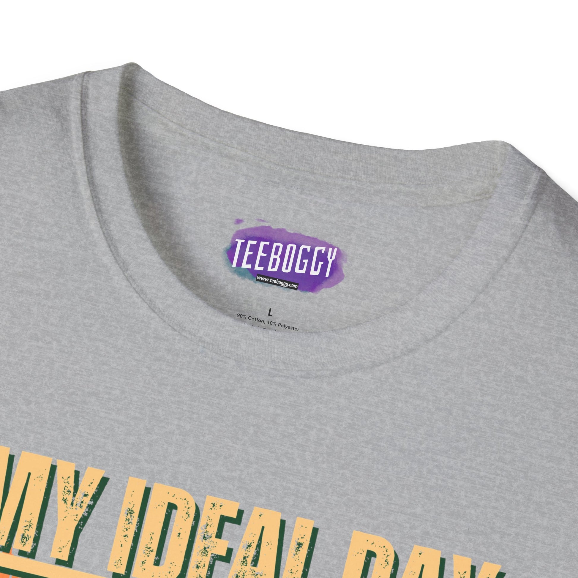 A fun statement t-shirt listing the ideal daily schedule for most guitarists, featuring a classic crew neckline and made with 100% ring-spun cotton for a lightweight and comfortable feel. Perfect for guitar enthusiasts looking for a versatile and stylish piece to wear throughout the day.