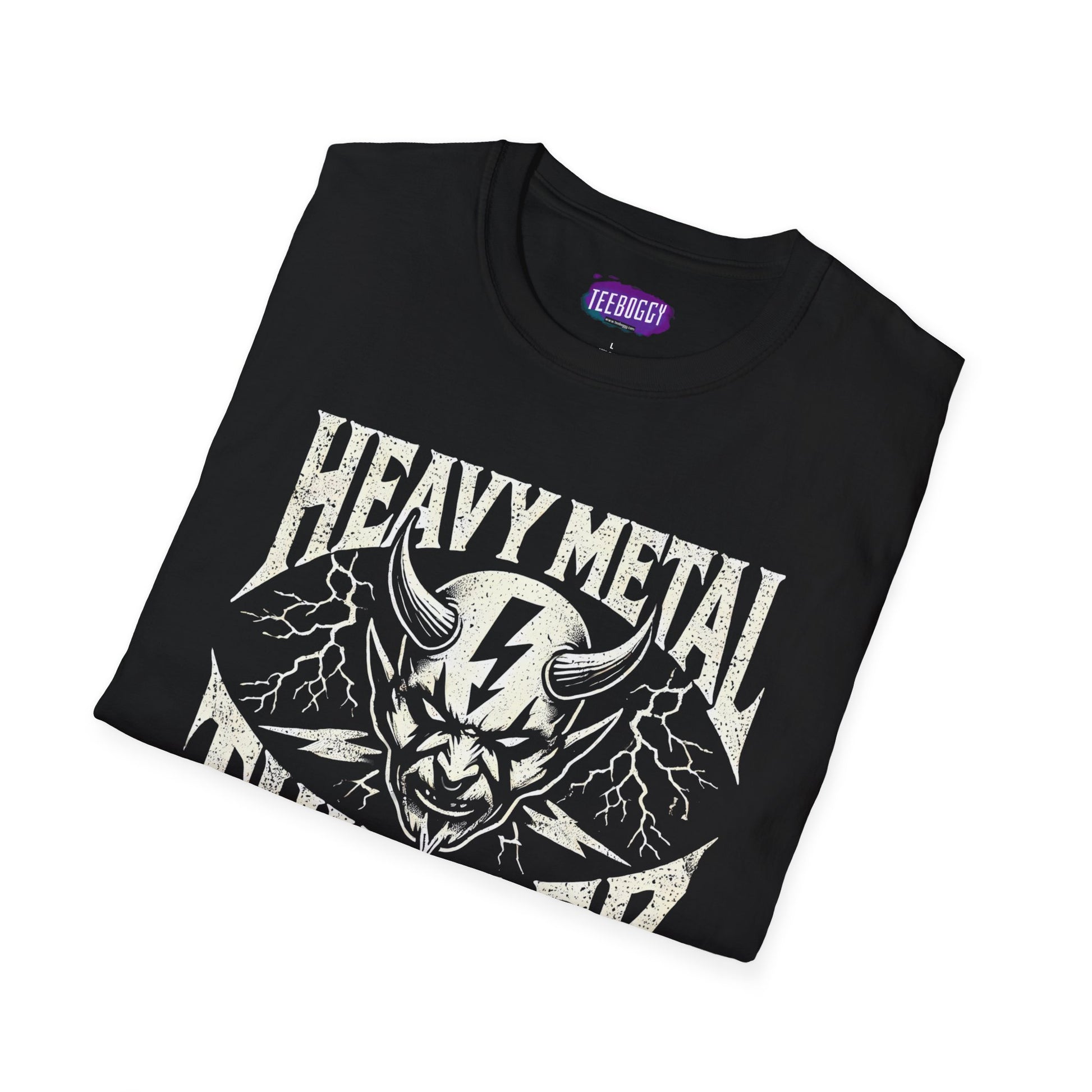 A Heavy Metal Thunder themed t-shirt for all lovers of heavy metal music. Featuring devil's horns and AC/DC type thunder bolt, this tee exudes a rebellious and edgy vibe. Perfect for music enthusiasts and concert-goers, this shirt is ideal for rock and metal music events, festivals, and casual everyday wear.