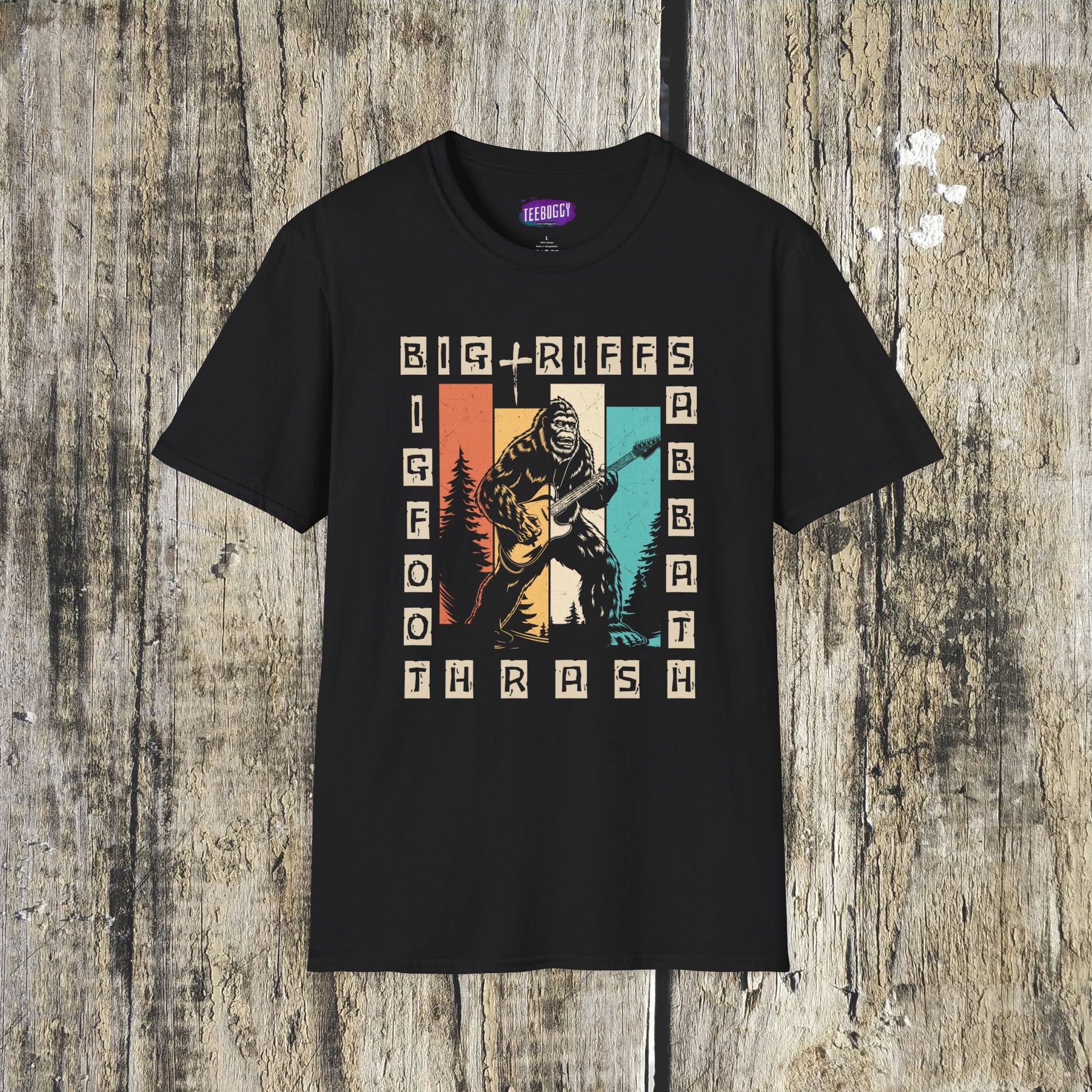 - Features a fun and quirky design of sasquatch playing guitar in the wilderness