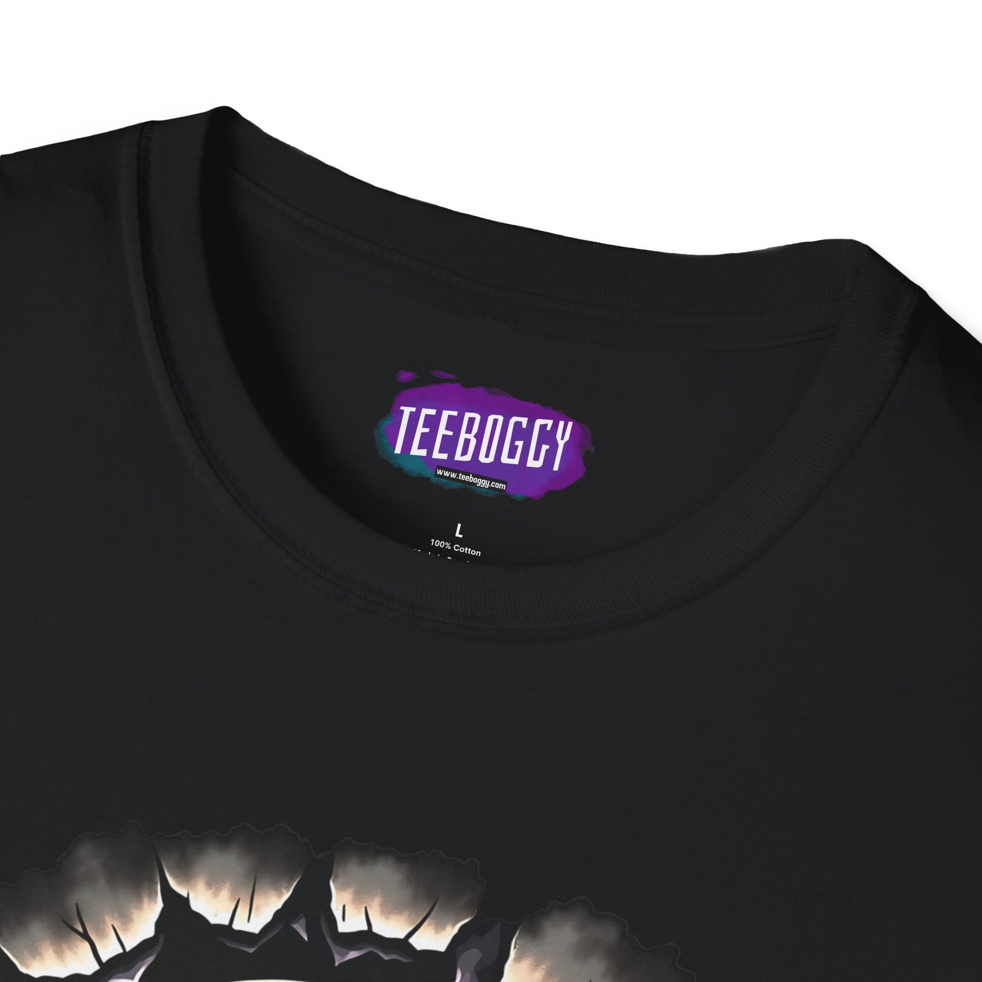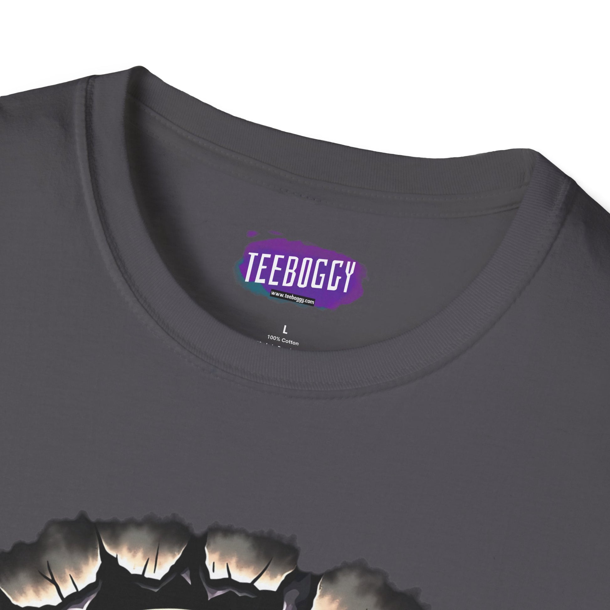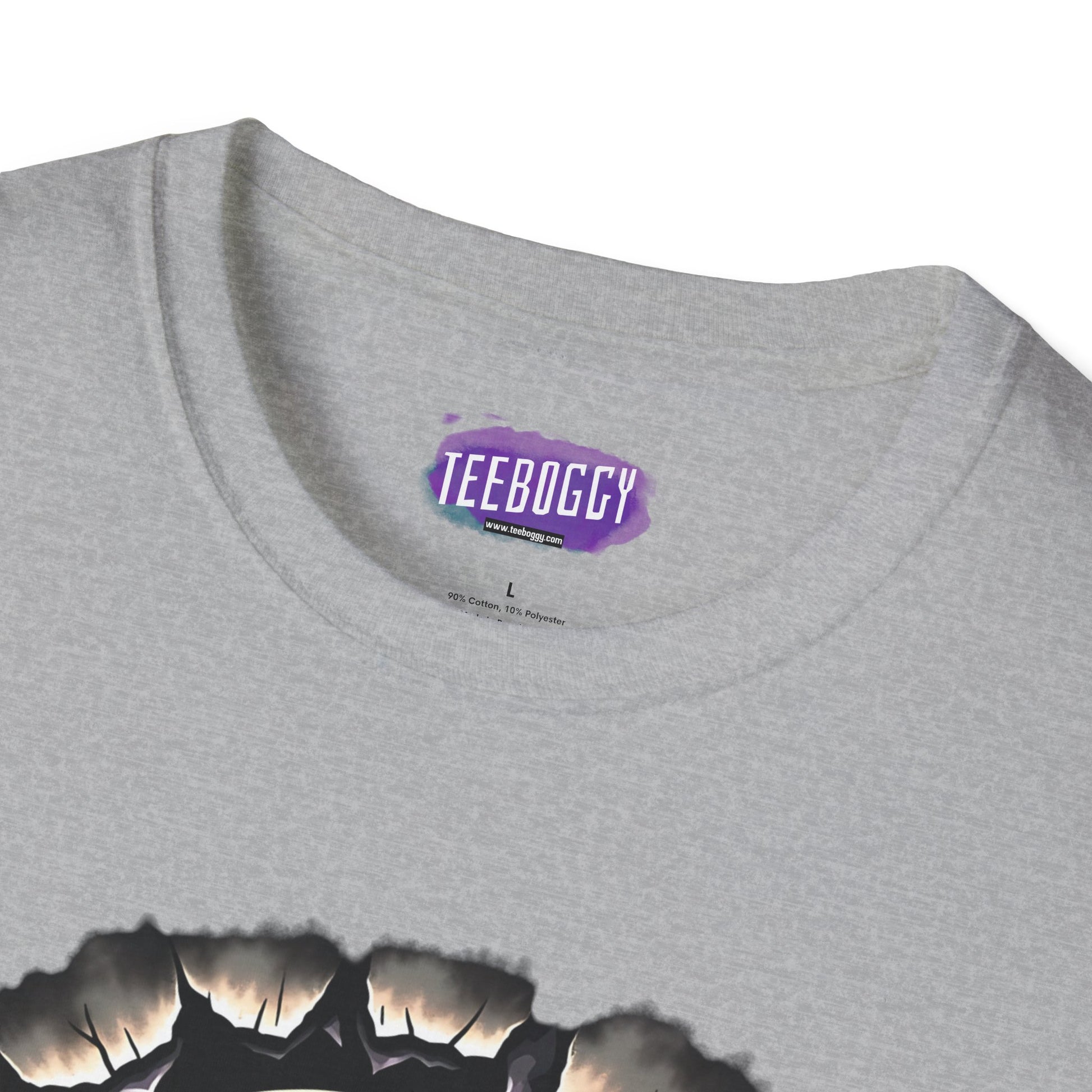 A fun t-shirt with a horror theme featuring an image of a skull which appears to rip through the fabric, giving a unique and edgy vibe. Perfect for those who enjoy spooky or Halloween-related designs. Ideal for casual wear or as a statement piece for themed events or parties.